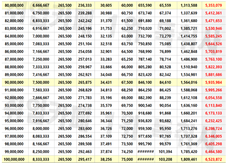 5. 연봉구간 별 실수령액 표 (+연봉 1억까지)